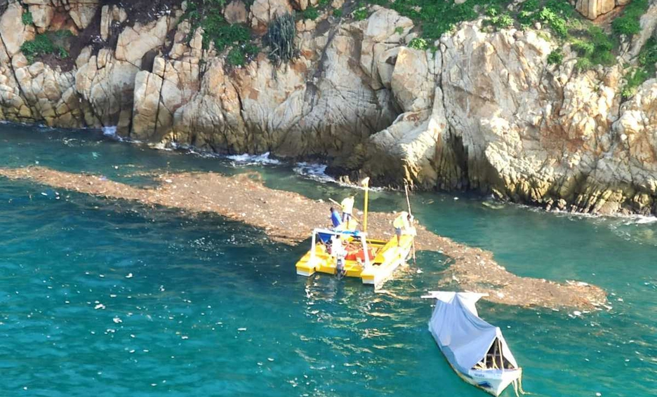 Acapulco de Juárez, Gro.- El día martes 14 de julio, desde muy temprana hora, dos barredoras marinas realizaron limpieza en las aguas marinas de la playa La Angosta, en la zona Tradicional de Acapulco, donde se ha retirado un aproximado de tres toneladas de lirio acuático.