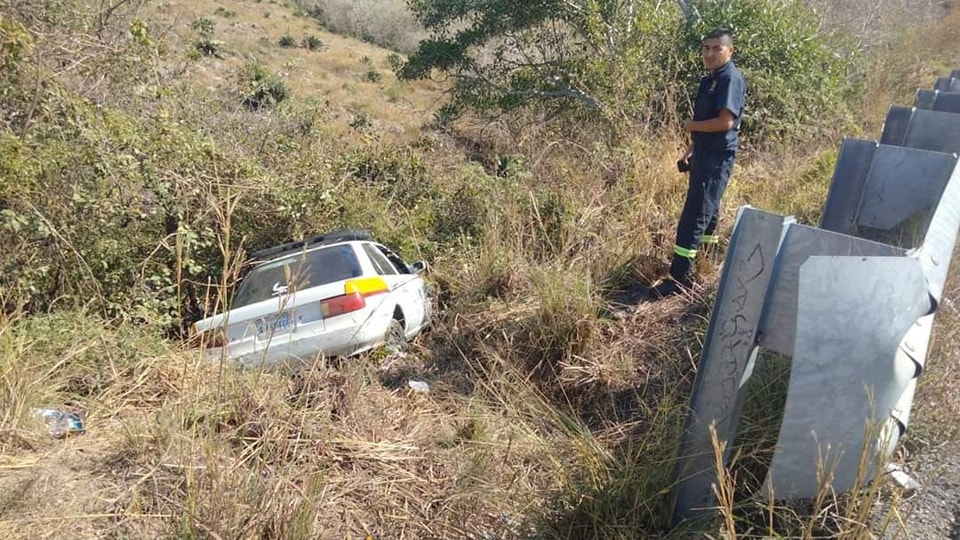 Chilpancingo de los Bravos, Gro. – Un taxi que transitaba sobre la carretera federal México-Acapulco en Chilpancingo, terminó en un barraco.