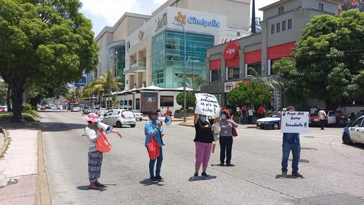 Acapulco de Juárez, Gro.- Trabajadores, jubilados y pensionados del Instituto de Seguridad Social del Estado de Guerrero (ISSPEG) realizaron una protesta bloqueando un carril de la avenida Costera Miguel Alemán, a la altura de la Diana Cazadora, en dirección de la Base al Centro.
