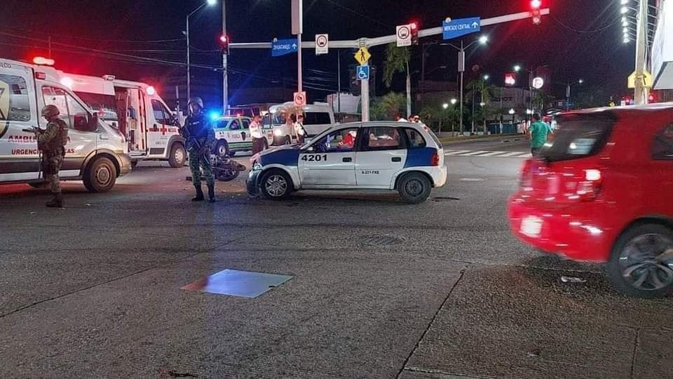 Acapulco de Juárez, 2 de octubre 2023.-Un trágico accidente ocurrió en la avenida Cuauhtémoc, en la colonia Progreso del puerto, cobrando la vida de un hombre que chocó su motocicleta contra un taxi blanco con azul.