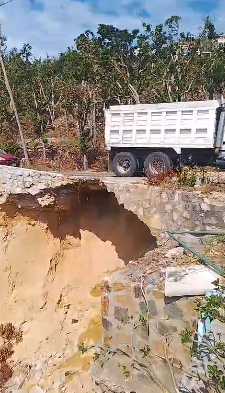 Ante el riesgo potencial de colapso en la vía que conecta la zona Diamante de Acapulco, las autoridades de Protección Civil acordonaron un tramo del carril con dirección a Puerto Marqués como medida de precaución.