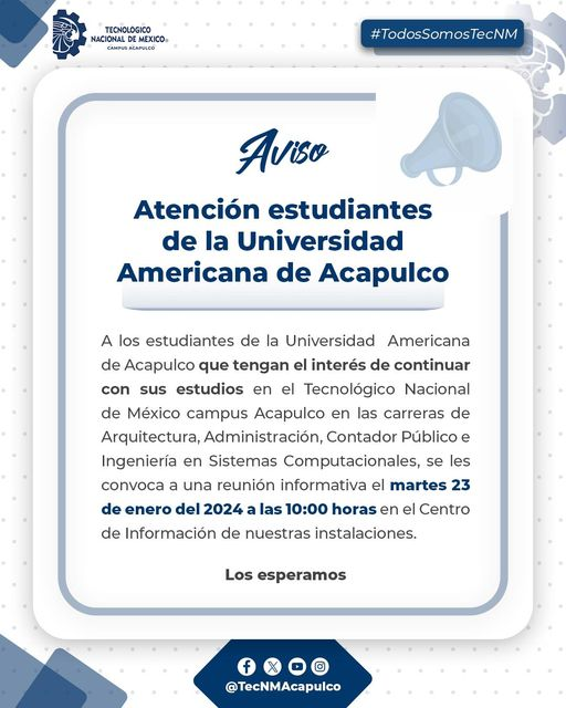 Esta iniciativa demuestra el compromiso del TecNM Acapulco en contribuir al bienestar académico de la comunidad estudiantil, ofreciendo una solución concreta a los desafíos generados por el cierre de la Universidad Americana.