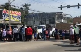 Acapulco de Juárez, 19 de marzo 2024.-Desde las 9:30 am de hoy, al menos 50 personas afectadas por el huracán Otis bloquean uno de los accesos a Acapulco, en el punto de Paso Limonero, en señal de protesta por la falta de entrega de enseres prometidos por las autoridades.